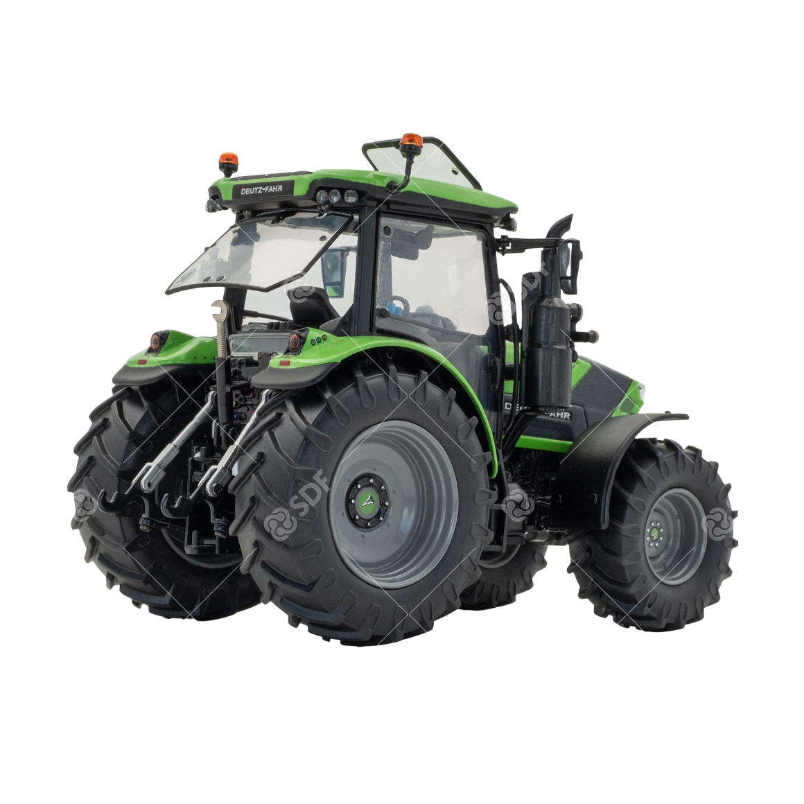 The DEUTZ-FAHR 6135 Rvshift scale model is made of die-cast metal with plastic parts. It faithfully reproduces the details of the tractor both inside and out. Steering front wheels, opening doors and roof, adjustable mirrors. Scale 1:32.