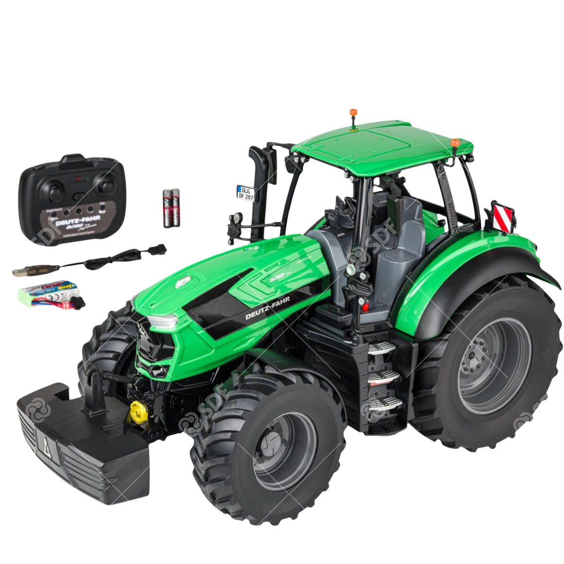 Delivery & ReturnsReady-to-use 8280 TTV remote-controlled tractor, scale 1:16. Includes 2.4GHz remote control, 4.8V / 400 mAh NiMH battery, USB charger, 2 x AA batteries for transmitter and instruction manual. Age: from 8 years up.